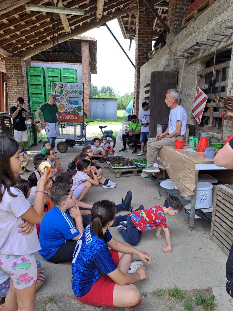 Anche quest’anno il divieto di percorrere le strade non asfaltate per la peste suina, ha obbligato BimbimBici ad un percorso in buona parte urbano che è servito comunque a capire le regole della circolazione. Oltre alla Polizia Locale, una trentina di soci FIAB hanno presidiato gli incroci, guidato ed accompagnato gli oltre 120 partecipanti in un percorso di 10 km che li ha portati alla Cascina Gambarina. Marco Cuneo titolare dell’azienda agricola Orti del Parco, ha illustrato le coltivazioni e ha insegnato ai bimbi a piantumare in vasetti gli ortaggi. Ognuno si è portato a casa il proprio vasetto per continuare a coltivarlo.